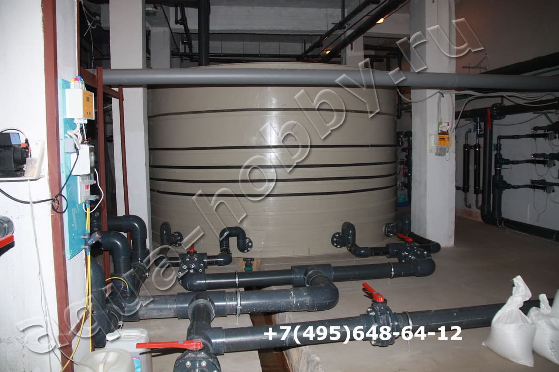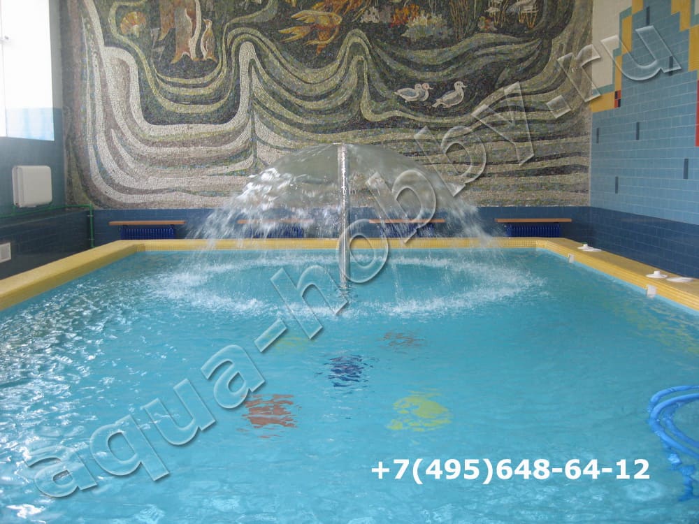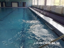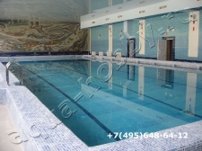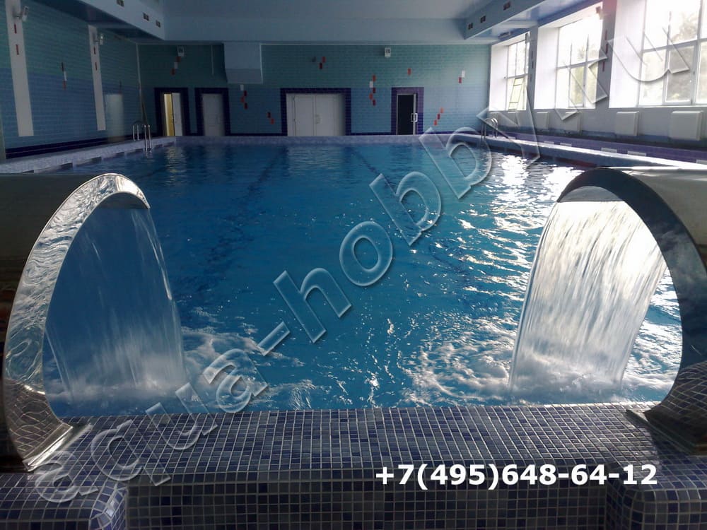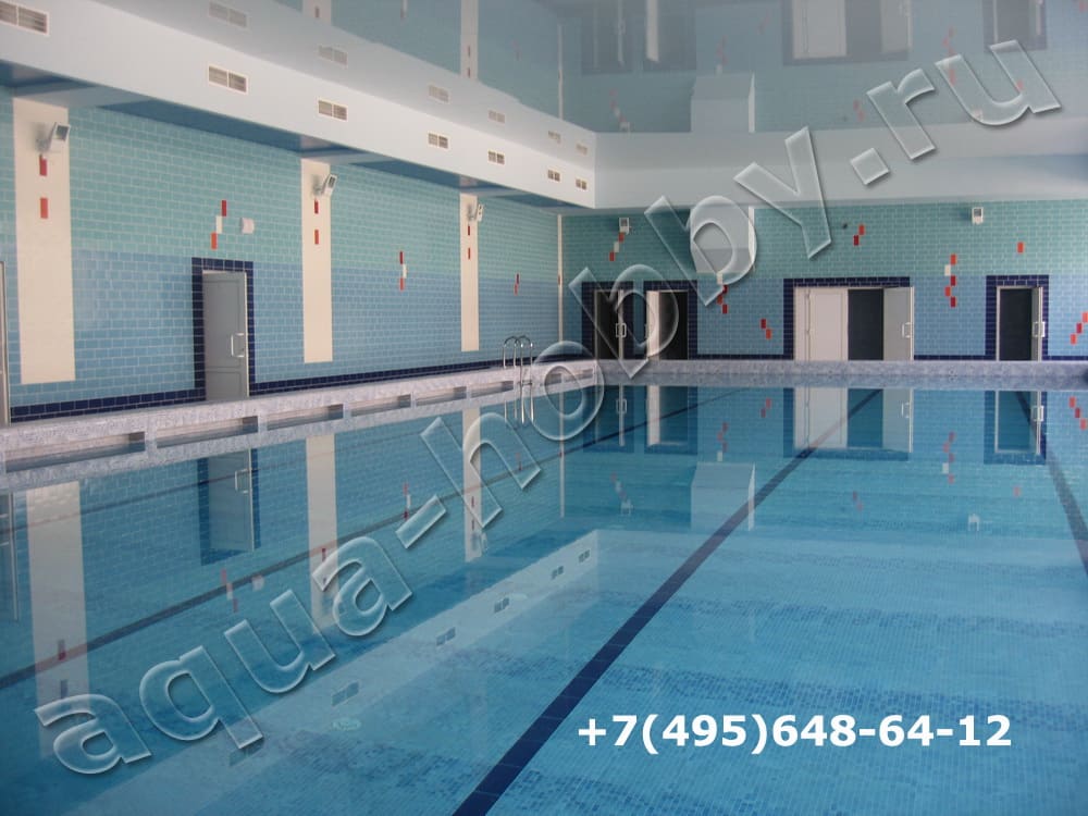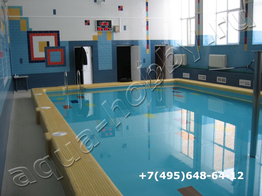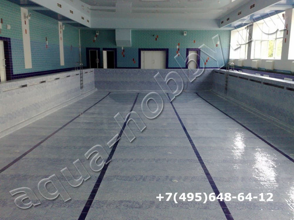 Спортивный бассейн 25м х 12м, детский бассейн 10м х 6м. Изготовление переливных емкостей из листового полипропилена на месте - основная 40 м3, приемная от промывки - 25 м3. Сдача областной комиссии и Губернатору МО Громову Б.В.