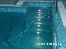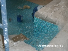 Бассейн - мозаика Bisazza с авантюрином. Помещение - покраска, дикий камень, плитка.