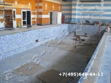 Оштукатуривание бассейна, устройство гидроизоляционного слоя, облицовка бассейна мозаикой. Алмазная резка отверстий.