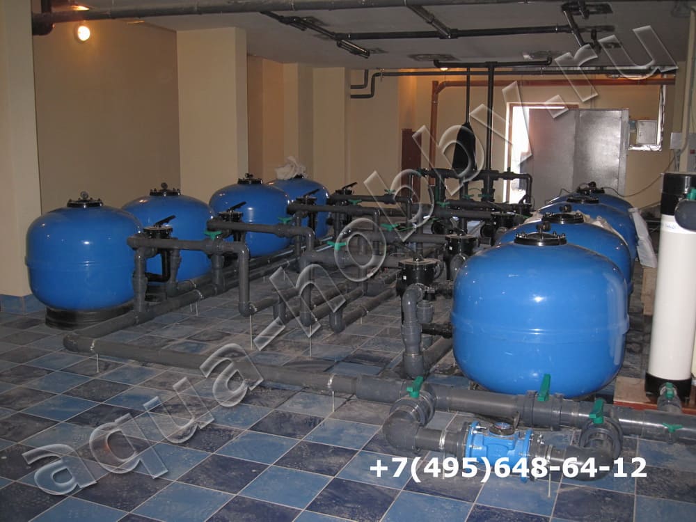 Система фильтрации, система обеззараживания, станция коагулянта, подогрев воды в бассейне.